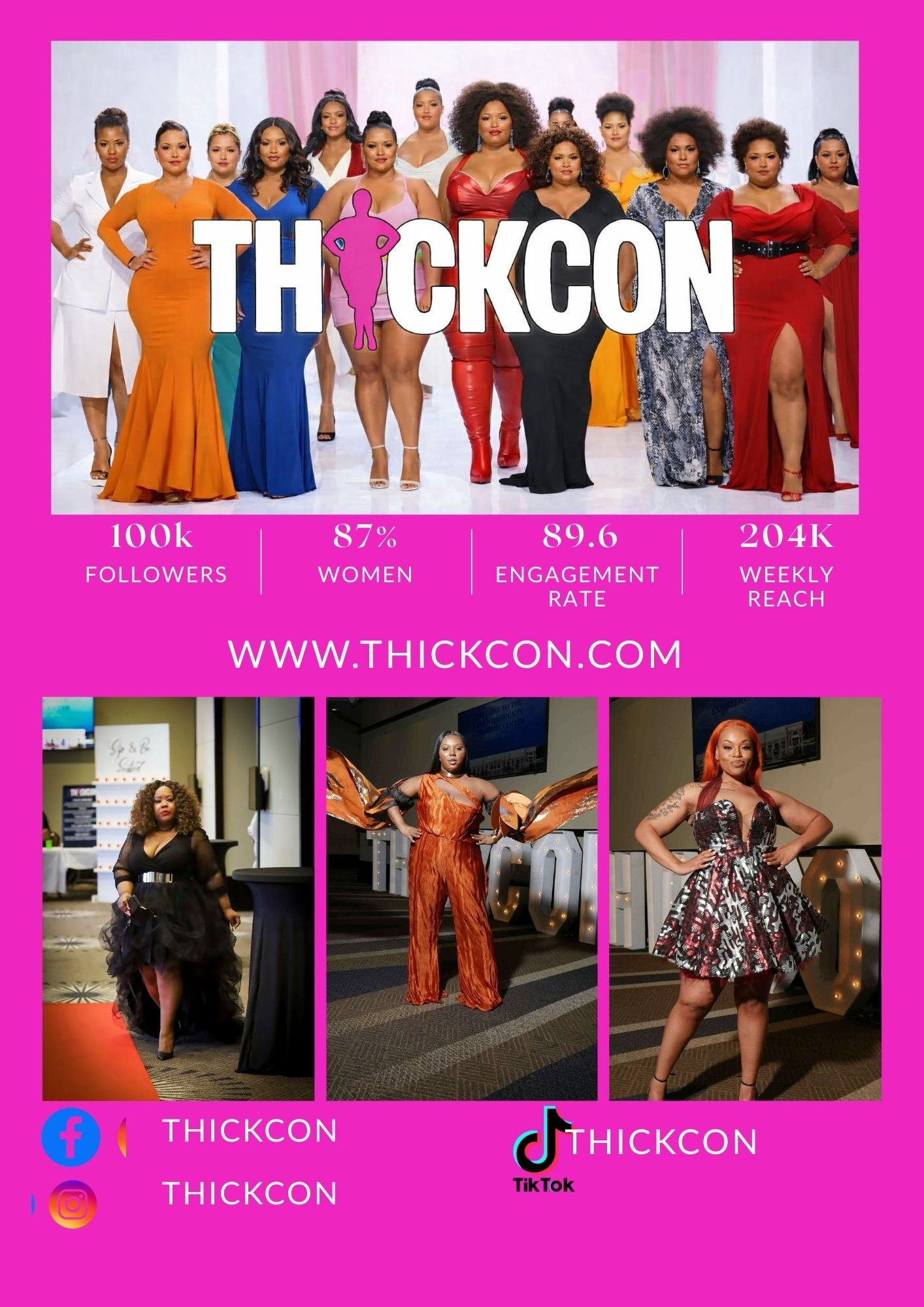 The plus-size market is a powerful and growing segment in fashion. Over 60% of U.S. women wear size 14 and above, with continued expansion projected. THICKCON fills the gap with an empowerment conference for plus-size women, focusing on fashion, wellness, business, and community.